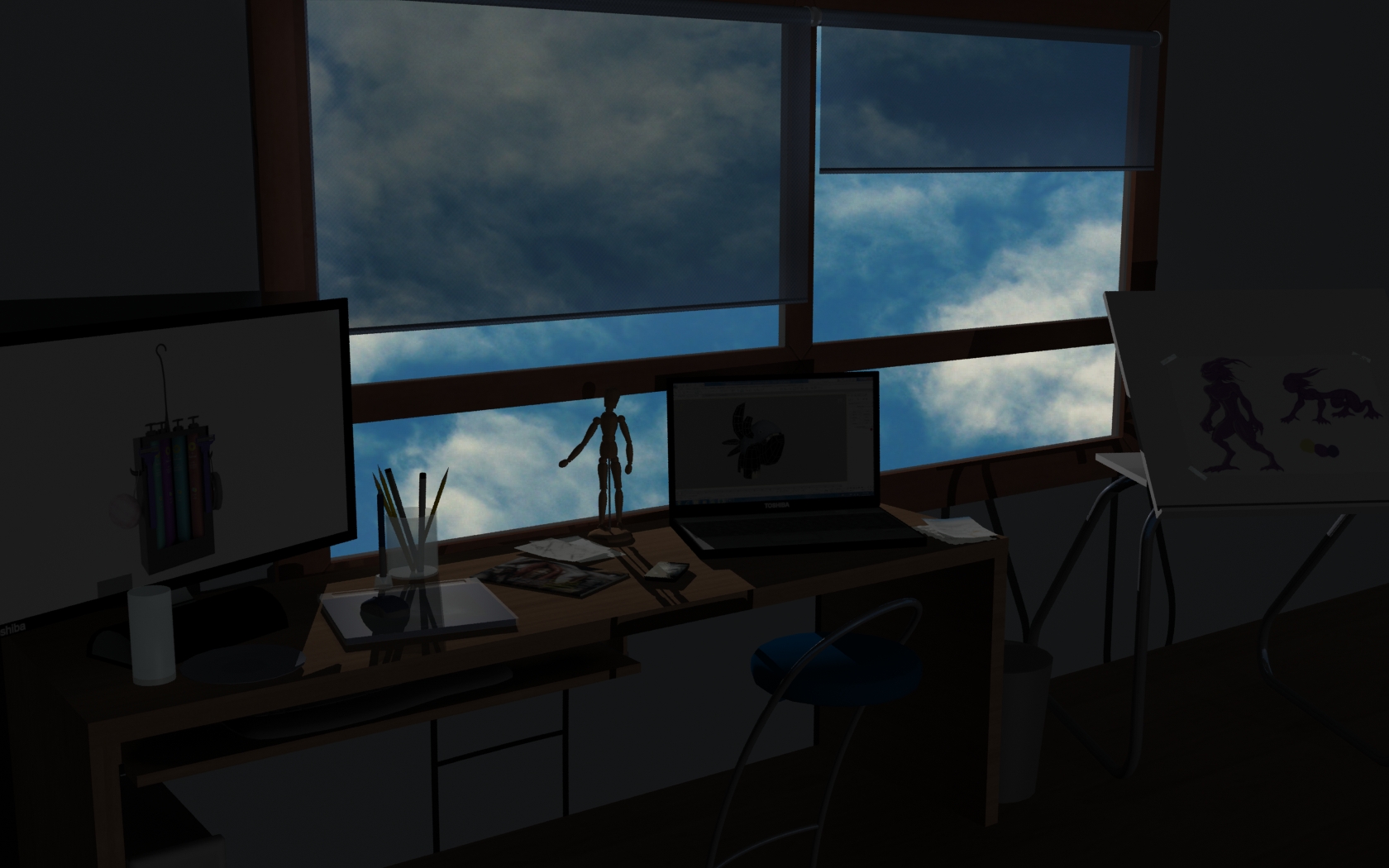 By: 1upcreations March 2, 2014 3D, Personal Artist’s Studio 3D Scene of a conceptual Artist’s Studio Artist Studio (Concept)