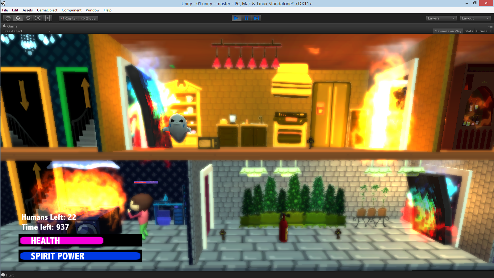 Good Will Haunting is a game created between the University of Toronto and OCAD University students. In the game, you control a ghost who must get everyone else out of a burning building so that you can live in the afterlife in peace. You want them out because you do not like sharing your haunting ground and want to stay as the solitary ghost in the region.