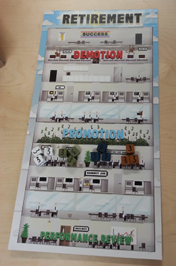 Will you climb the corporate ladder or get fired in this board game?