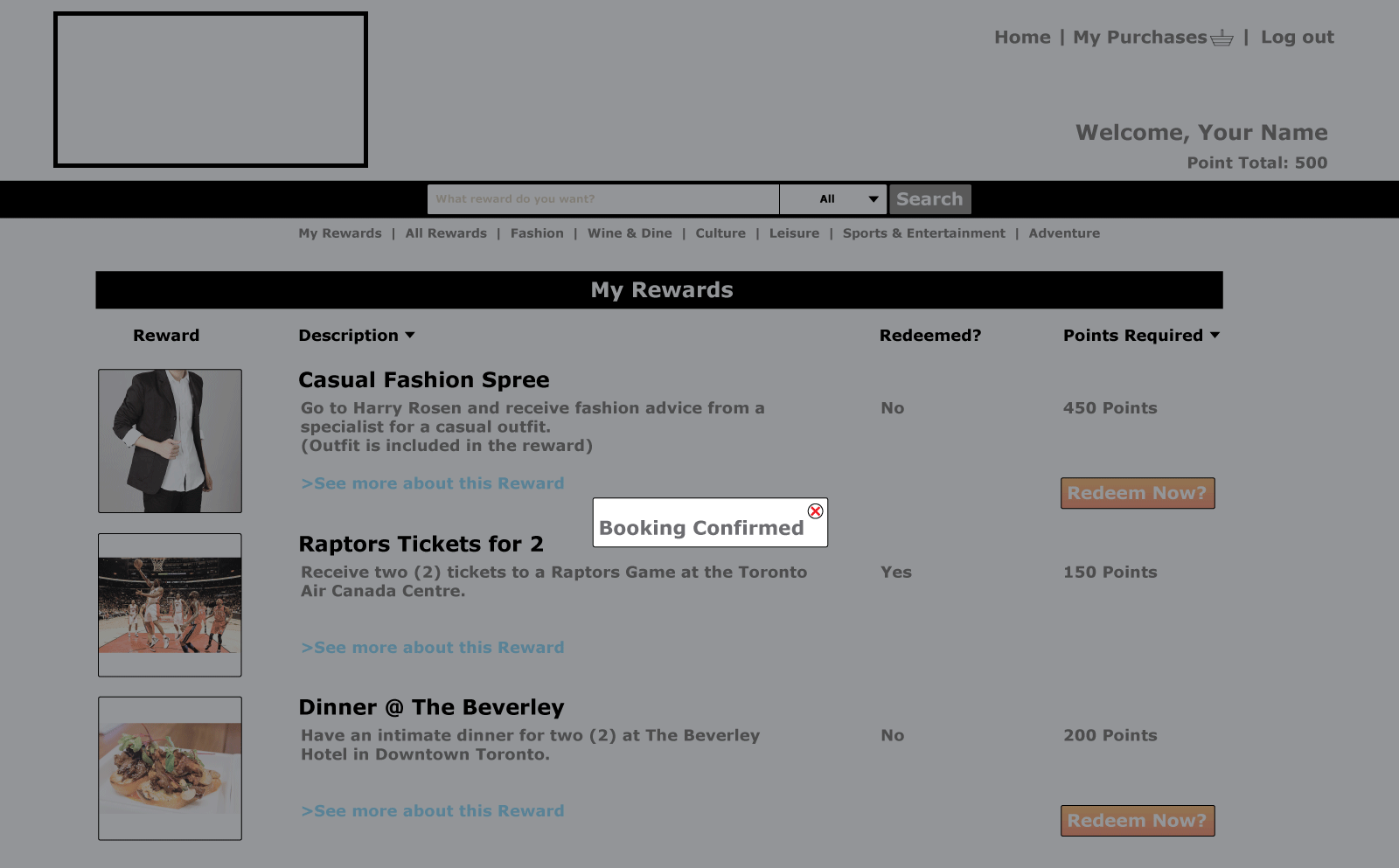 Solution / Working closely with the Team Lead, we worked out a user experience flow that implemented all modules into the entire system. I created mock-ups from this point, and iterated on any design feedback I received. My focus was on making the system easy to use so that employees could redeem or schedule rewards with no problems.